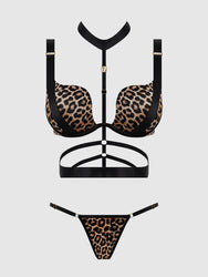Sold out - Devon Push Up Bra w/Harness & G-String 3 pc Set Leopard