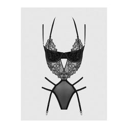 - Eden Embroidered Lace & Mesh Teddy with Garters Black